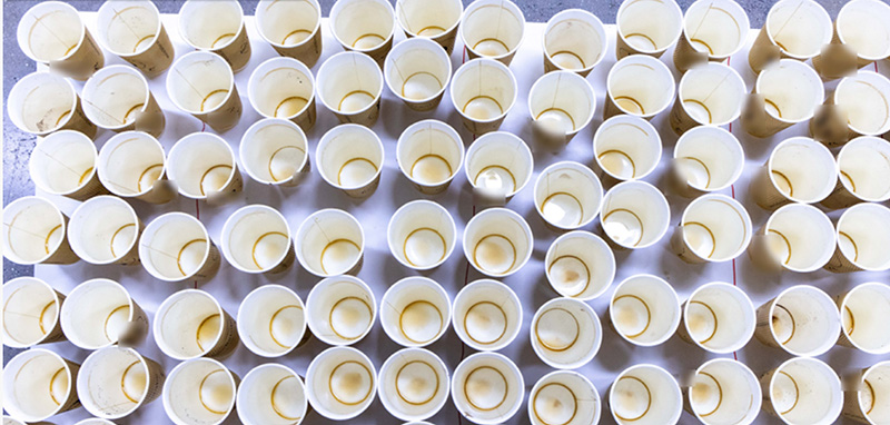 Experimentell process: Sätt PE, PLA och vattenhaltig fodrad papperskopp ihop, gräva en grop framför forskningsbyggnaden och låt dem förnedra sig naturligt. Varje gång den upptäcks bör den läggas tillbaka på sin ursprungliga plats att observera dess tillstånd.