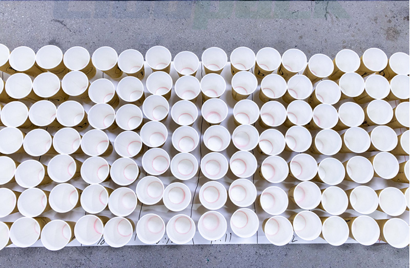 Styvhetstest: Jämfört med traditionella metoder har både tomma papperskoppar och de fyllda med vätska högre styvhet.